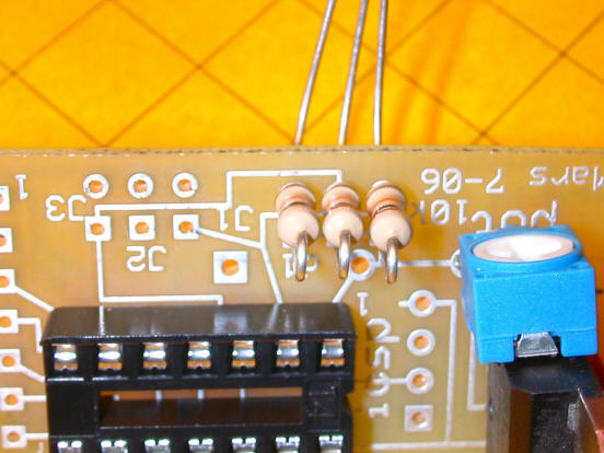 Clip the excess close to the board. Placement of 4 resistors if using the 4 LED light.
