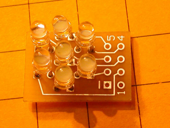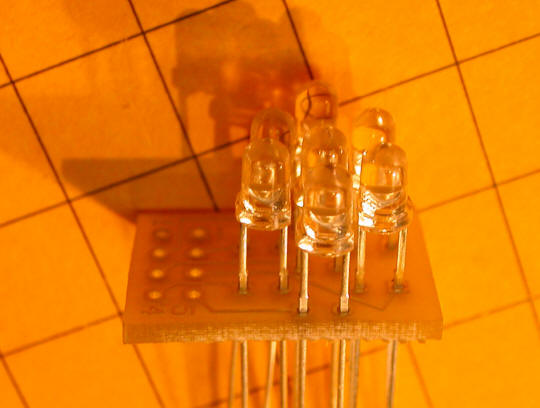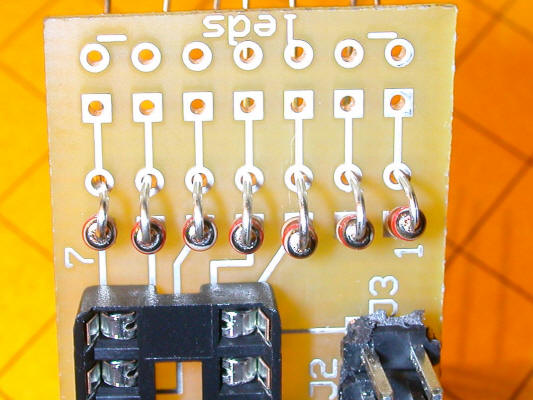 Here you can see the flattened area on the leads that keeps the LEDs spaced an equal distance from the board.