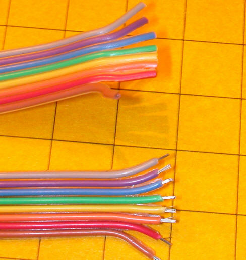 could be used. To use the ribbon cable that is supplied with the kit separate the wires for about 1/2" at each end. Once separated carefully strip about 1/8" of insulation from each end of each wire.
