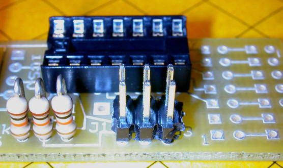 6. Now you can experiment with the other patterns that are programmed into the microcontroller. Install a jumper on the pins labeled "j2" and / or the ones labeled "j3" |