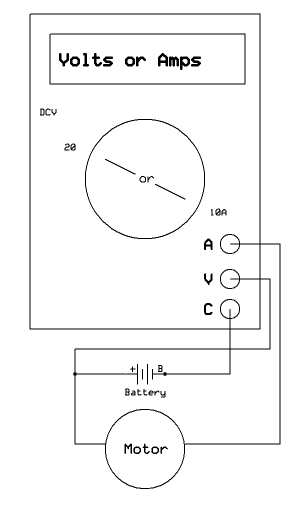 This works because you are always routing the power to the motor through the shunt that connects the command and 10 amp plug. I have moved the selector through the full set of ranges and have noted no damage to the meter. Give it a try and see what you find with your meter. No guarantee that it won't cook your $500.00 Fluke but it sure works well with my $2.00 Harbor Freight! |