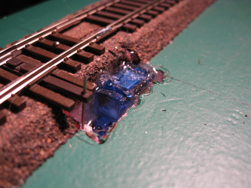 The original module used standard solenoid based switch motors along each switch. They didn't look or work too well. The switches are now thrown by miniature servos.