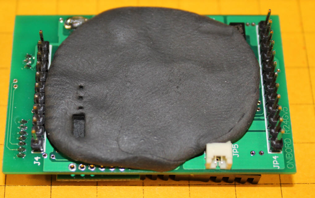 This photo shows the same blob of putty on the cover of the electronics