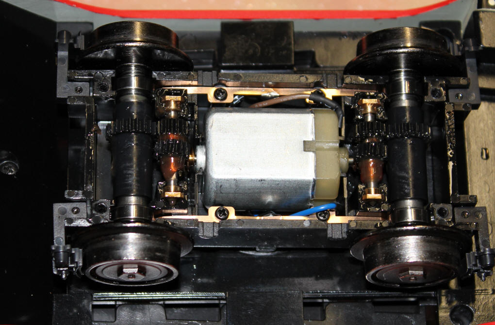 driven and all wheels have electrical pickups. There is a worm gear at
