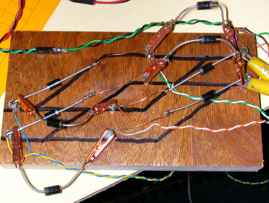 Diodes: Here is the matrix of diodes (no an breadboard, no less) that are used to control the crossing sidings.