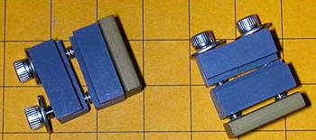 To wire this controller replace the two push button switches in the diagram above with magnetic reed switches. (See Garden Railway Sensors - Part 1 for more information on reed switches) Then glue a magnet to the bottom of an engine or trolley so that it passes directly over each of the reed switches as it travels back and forth. It will trigger the appropriate coil to change the polarity as the train reaches the end of a point-to-point track. Place the reed switches between the rails a few inches before the diodes at either end of the track. The diodes are optional and are only there to stop the train should the reed switch fail to sense the magnet passing over it. Note that the diode's banded ends, the cathodes, face to the right at both ends of the near rail. This is the way they must be installed for G scale. If you want to try this with HO and smaller scale layouts you need to reverse both diodes.