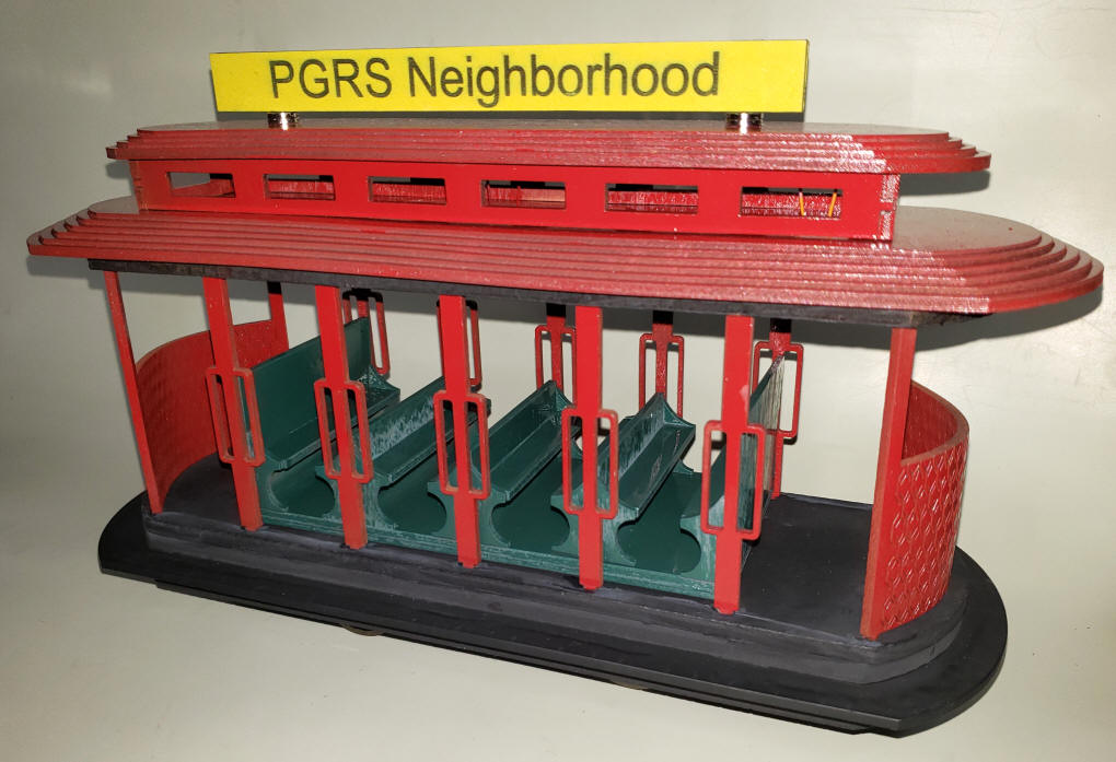 Children's Library in Mt. Lebanon, PA. Over the years of building them I gradually moved to making some of the parts with my laser cutters. I finally decided that it would be an interesting challenge to do 100% (or close to it) of the build using laser cut parts. This web page shows how I designed and built a laser cut trolley. All of the design files are available as both CorelDraw and PDF files should you want to give it a try.