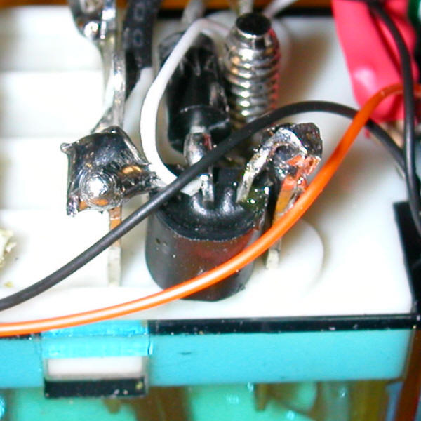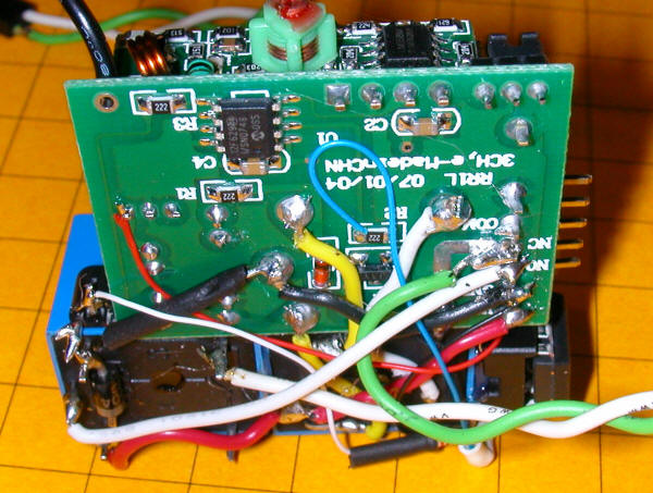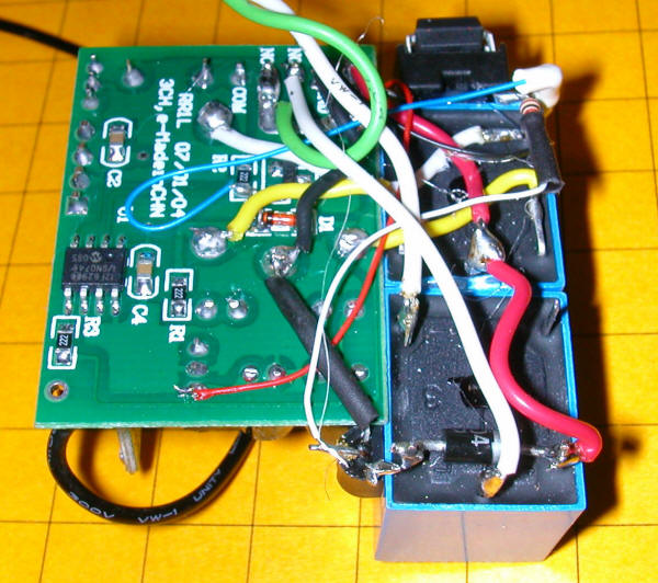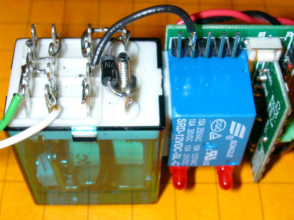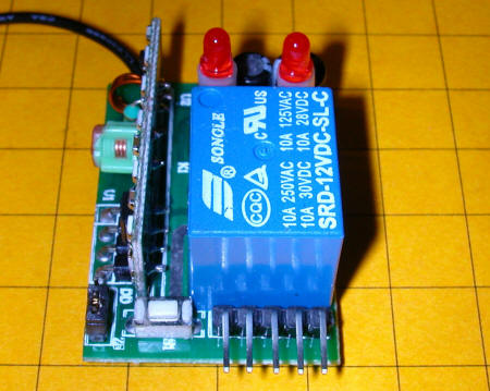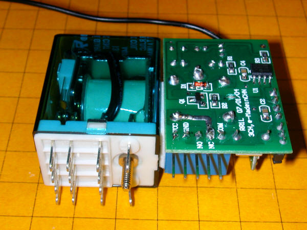 In this photo you can see the PIC processer (lower right) and the small potentiometer just above it. I did not create or use a circuit board and just glued the IC socket to the side of the relay.