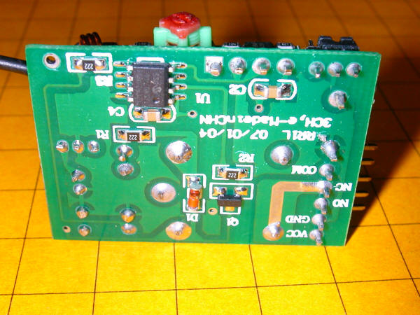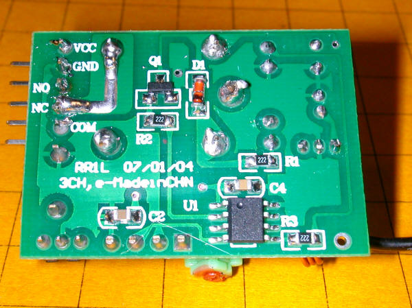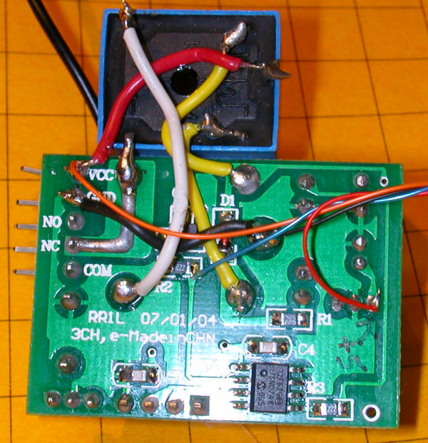 What follows is a series of step-by-step photos that show how the DPDT relay and PIC processer are added to the remote control module. We will be modifying the original board and soldering wires to it so it is a good idea to test it before beginning.