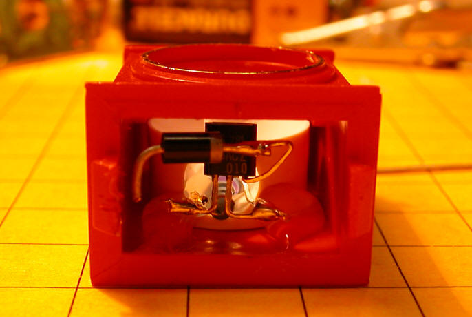 Compact Construction Leads on the voltage regulator, resistor and diode can be shortened to give a more compact package. The following configuration is suggested.