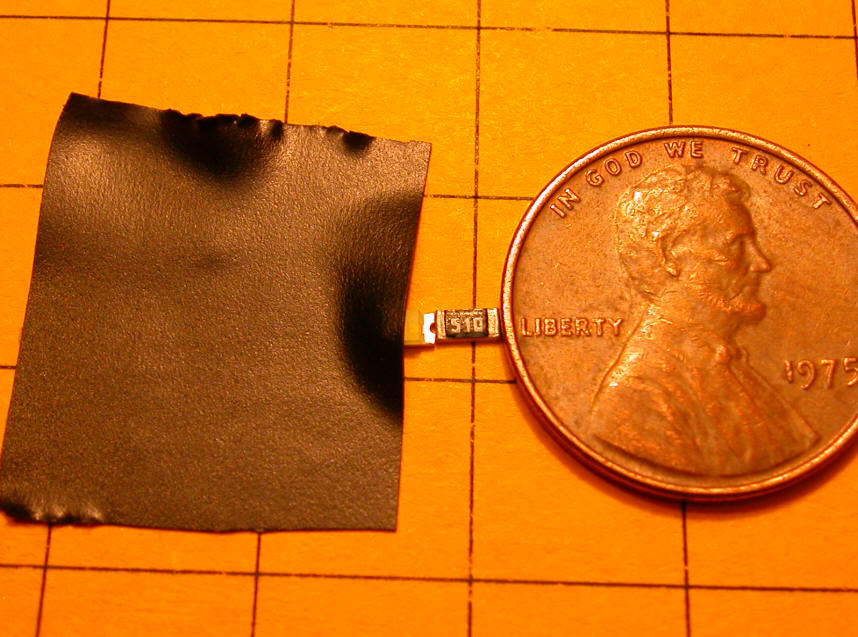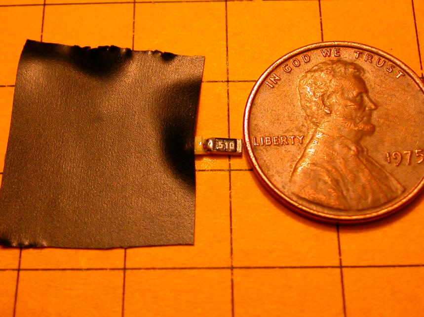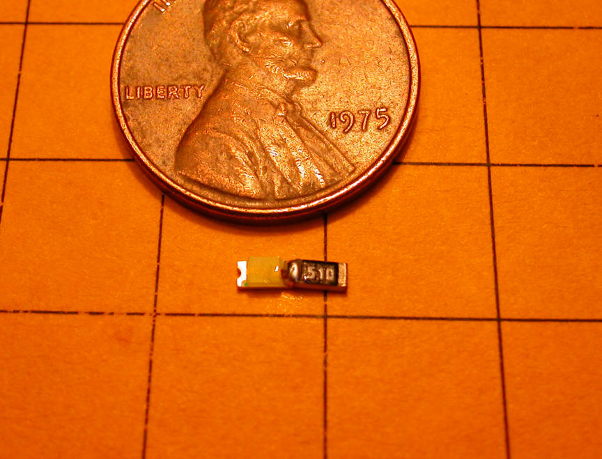 Surface Mount LEDs If space is at a premium and you have a good magnifying glass, surface mount LEDs and resistors can be used. The device on the right, marked 510, is a resistor and the other device is the LED.