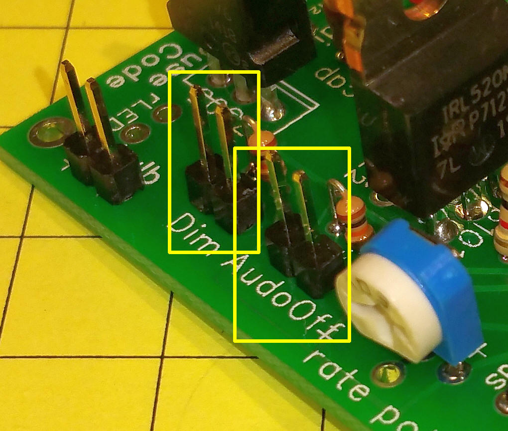 flashes (maximum about 1 minute) Auto Off Jumper: if on the lighthouse shuts off after 6 hours of darkness - remove to disable auto-shutoff Leave the jumper pins open (as shown above) to disable the 6 hour time off after sundown. Place a jumper on the pins to enable the 6 hour time off (note: CDs must be installed - see next section) Note: the time that the unit remains on can vary from 6 to nearly 8 hours depending on how often the lighthouse beam flashes. More flashes = longer on time., less frequent flashes = shorter on time. Dim Jumper: if removed the lighthouse lights dimly between flashes - if placed on the pins the bulb goes dark between flashes. The dim jumper keeps the bulb lighted dimly between flashes if not jumpered and completely off in between flashes if the two pins are jumpered.