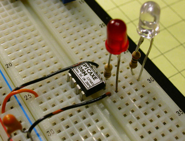 For those of you who would like to experiment with the Picaxe but don't want to bother programming it I will be glad to supply the Picaxe 08M programmed as in the example above at my cost. Please contact me via email (dave@davebodnar.com) for details I have given Radio Shack part numbers for the parts used in this article but you are likely to find much better prices from other vendors, including Hosfelt (www.hosfelt.com), Digikey (www.digikey.com), Electronics Goldmine (www.electronicsgoldmine.com), Jameco (www.jameco.com) and Glitchbusters (www.glitchbusters.com) - I have links to these and other vendors on my web page at www.davebodnar.com. |