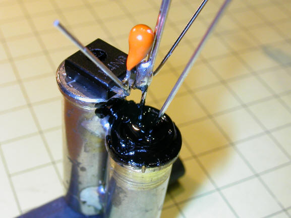 The back of the IR LED has been painted with several coats of black paint to add additional insurance that no IR emissions can escape the LED and get directly to the detector. If you skip this step you are likely to have problems - I sure did!