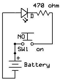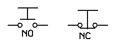 The two SPST switch schematics below are for momentary NO and NC switches. These are spring loaded switches that return to their normal state after being pushed.