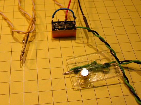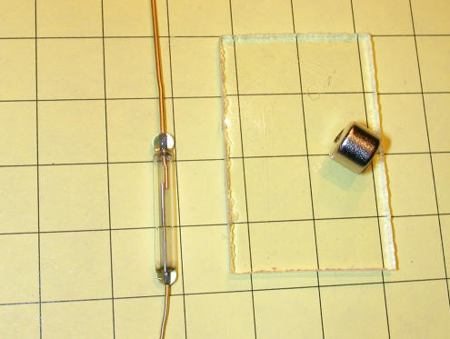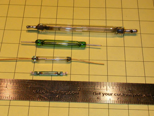 One word of caution when working with reed switches similar to the 3rd one in the photo above, don't try to bend the wires coming out of the glass tube with your fingers! Doing so is almost guaranteed to break the glass. Grip the wire with needle nose pliers next to the glass and then bend the wire as needed.