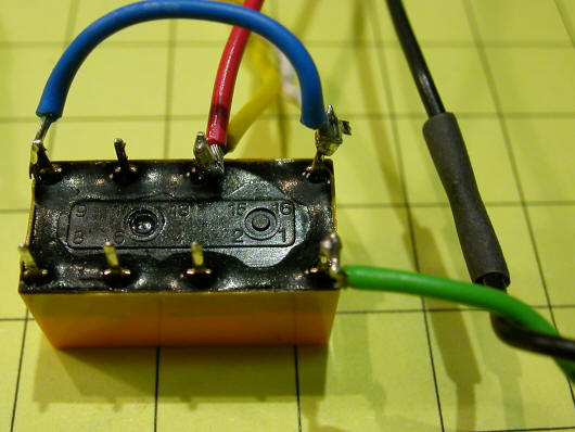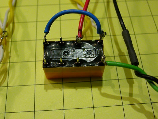 There is one unusual characteristic of this relay that I had not run across before. The coil is polarized. That means that the positive and negative power connections must be made correctly or it will not work. Most relays don't care about polarity. In this case I wired it incorrectly the first time and it did not work. Just reverse the power connections connecting the red, positive wire, to the NC reed switch and the black, negative wire, to pin 15 and it should work just fine. Alternatively you can just order Electronic Goldmine's part # G15205 that has a non polarized coil and you can forget about polarity altogether!