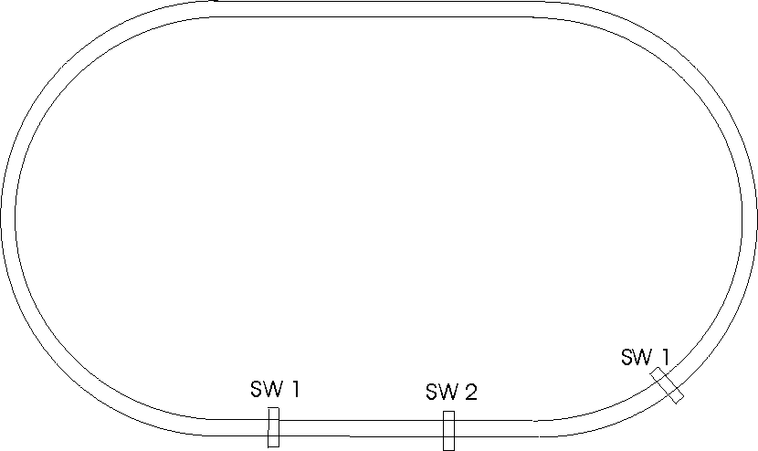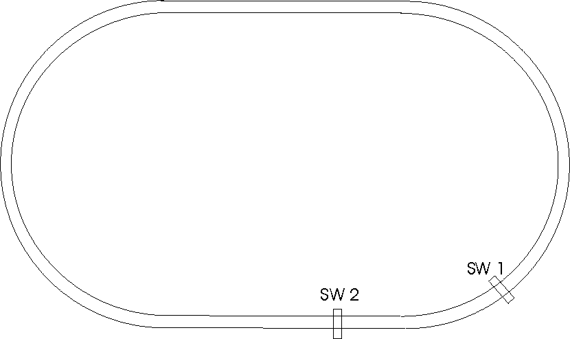 You will want to modify this circuit a bit if you regularly run your trains in both directions. As set up above a train moving in a clockwise direction, for example, would hit SW1 first, turning on the relay, and then SW2 turning it off. If you ran the train in the other direction the train would hit SW2 first, doing nothing, and then SW1, triggering the event which would continue until the train completed its loop and hit SW2 again. IF we add a second NC switch, wired in series with SW2 and placed a distance away from SW1 in the opposite direction from the first NC switch, the event would stop whenever either of the NC switches was hit.