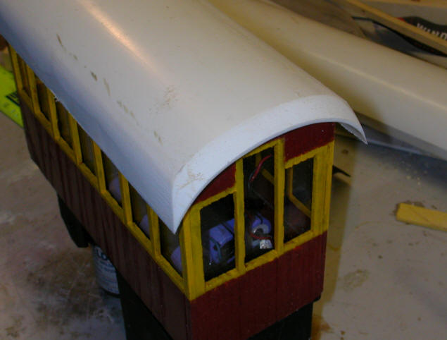 Here's the finished roof. Much better if I do say so myself! The additional lighting in the clerestory was very visible after dark and added a nice touch to the completed cars.