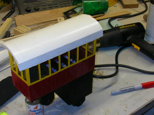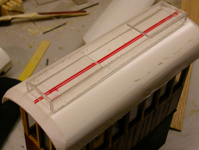 While I was at it I decided to add the raised roof section, called a clerestory, to the roof. It is made of Plexiglas so that it can be illuminated.