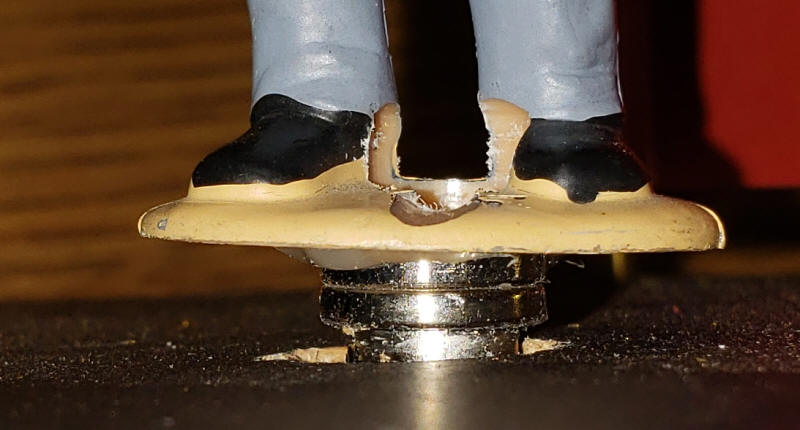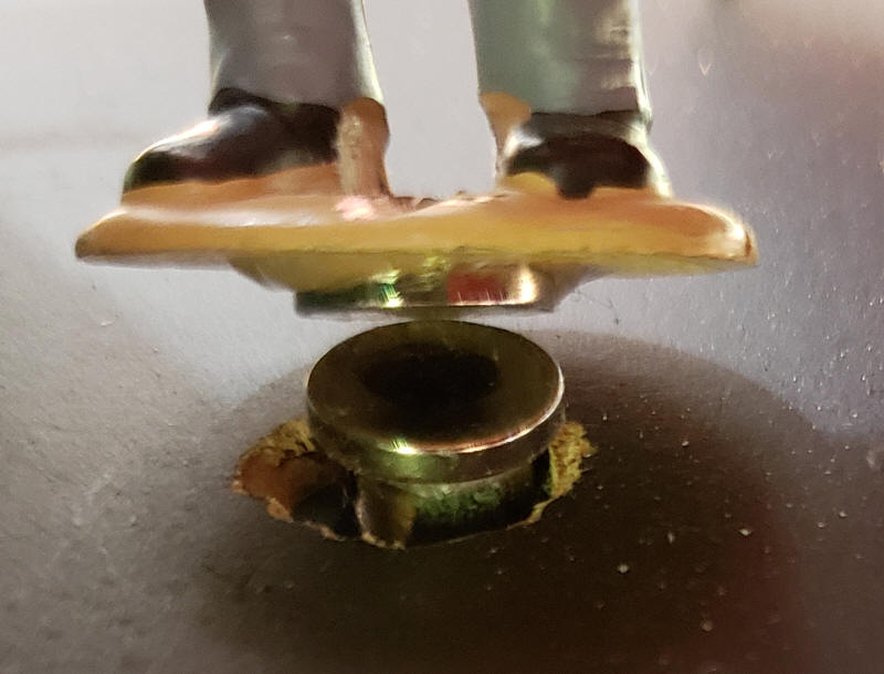 Attaching the Conductors I experimented with several ways of attaching the base of each conductor to the motor's shaft and settled on using small rare earth magnets (available from Amazon ) ) One was glued to the conductor's feet and the other was glued to a Dubro Collar (available from Amazon ) ) that was attached to the motor shaft.